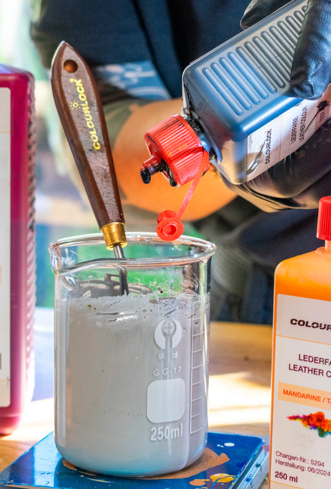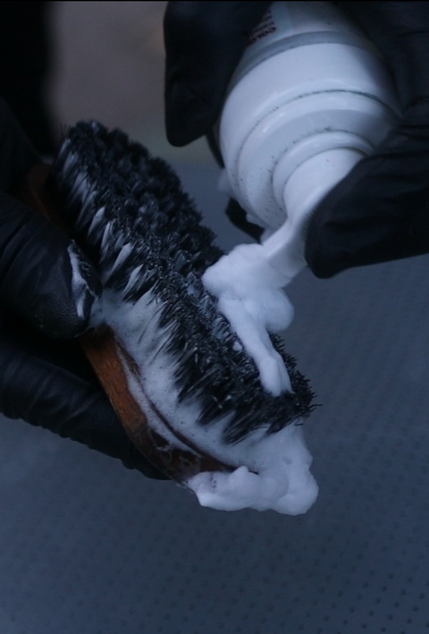 Firstly, the leather item should be cleaned thoroughly before refreshing the colour or applying care products. Use COLOURLOCK Mild Leather Cleaner against normal degrees of soiling or COLOURLOCK Strong Leather Cleaner in extreme cases (where the leather has been neglected for many years, for example classic cars languishing in garages and barns). Cleaning prior to the treatment prevents dirt sticking to the leather's surface when using colour or care products. Our COLOURLOCK Leather Cleaning Brush effectively removes ingrained dirt.