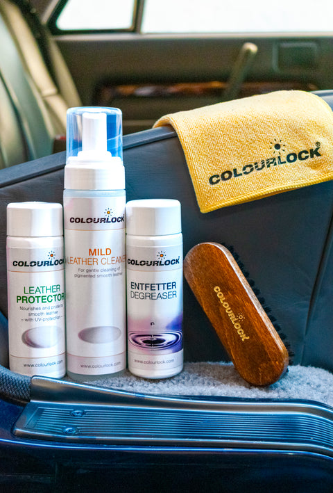 For surface care, we recommend our COLOURLOCK Leather Milk Protector/Conditioner. It contains antioxidants, which stops the leather's decay, and its UV filters protect the leather surface from colour fading and will make the leather soft and supple once more.